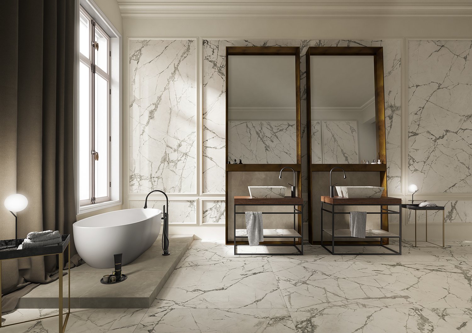 กระเบื้องพอร์ซเลนสีขาว ผิวแมท ลวดลายมีเอกลักษณ์เฉพาะตัว ที่ผสมผสานด้วยสายแร่ทองคำที่มีความบริสุทธิ์สูง ของหินอ่อนกลุ่ม Exotic ที่พบได้ยากจากป่าลึกในประเทศบราซิล สู่แรงบันดาลใจ ในการสรรสร้างกระเบื้องที่สะท้อนถึงความ Luxury, Unique และ Dramatic ได้ ในเวลาเดียวกัน ของกระเบื้องรุ่น Anima Ever จากแบรนด์ CAESAR ที่จะช่วยรังสรรค์และเติมเต็มทุกความต้องการ ให้กับพื้นที่สุดพิเศษของคุณ