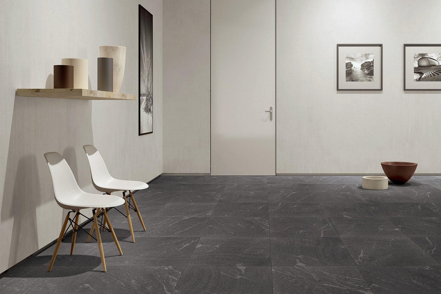 กระเบื้องพอร์ซเลน จาก WDC สีเทาเข้ม ผิว Matt ขนาด 60×60 cm. ซีรี่ส์ Flow กระเบื้องลายหิน สวยงามเป็นธรรมชาติ รองรับน้ำหนักได้ดี มีความทนทาน เนื้อกระเบื้องมีความพรุนตัวต่ำ และมีอัตราการดูดซึมน้ำต่ำเพียง 0.05% (Water absorption 0.05%) ทนต่อการขูดขีด เหมาะสำหรับปูพื้นและผนัง