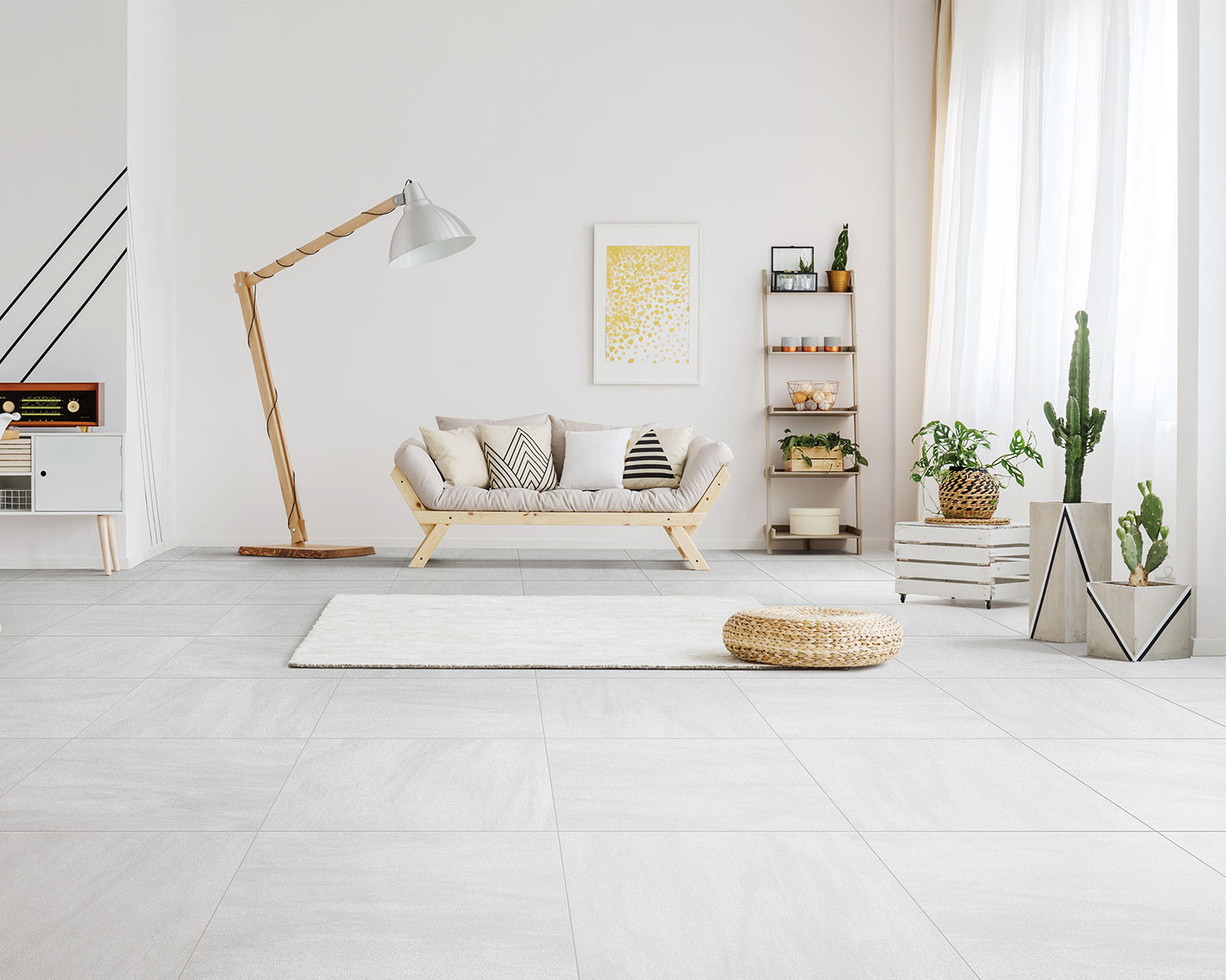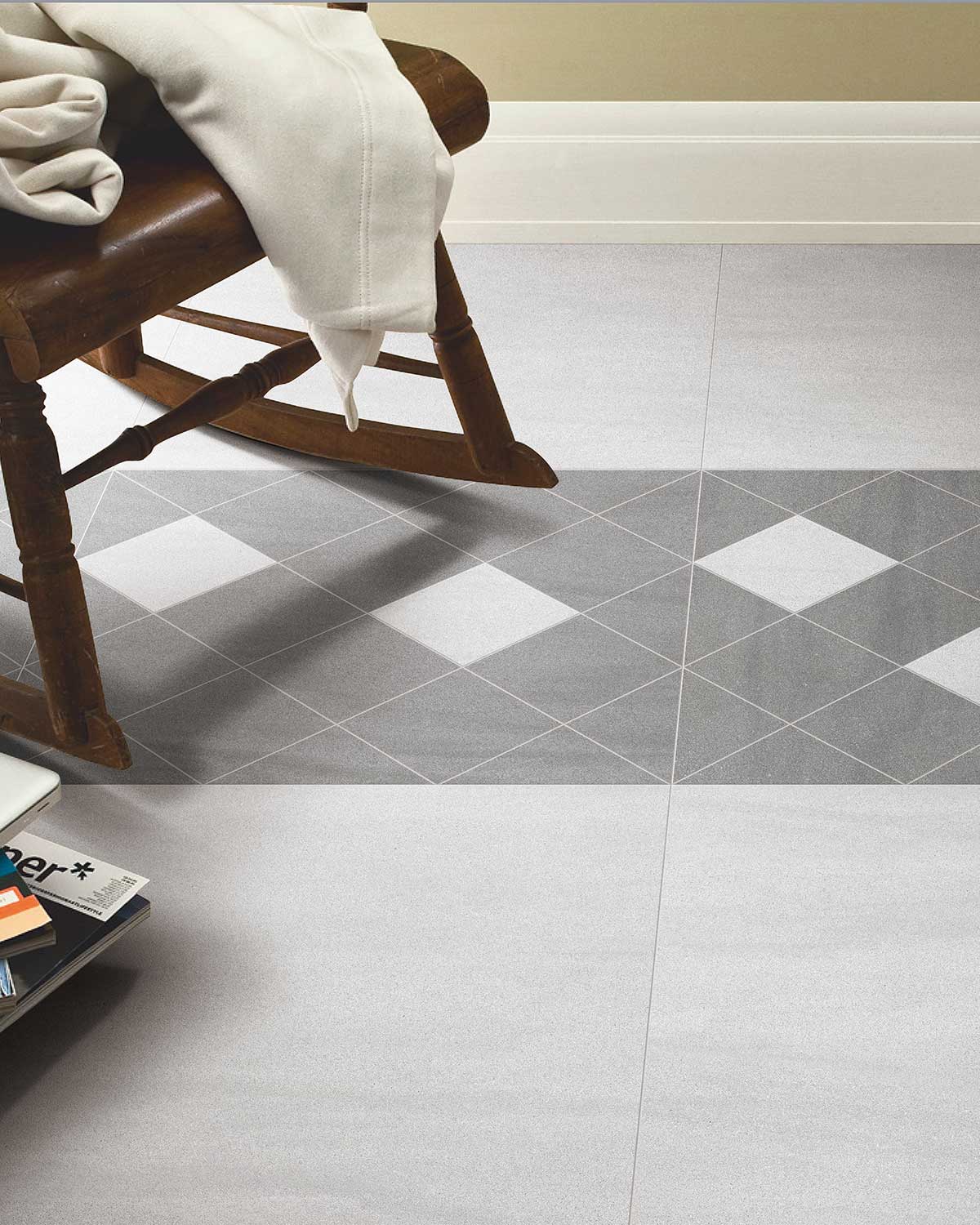 กระเบื้องพอร์ซเลนสีเทาอ่อน ผิว Microtec ขนาด 60×60 cm. ซีรีส์ Lagoon นวัตกรรมใหม่ของ WDC มีคุณสมบัติที่มีค่า 𝐑 (ค่ากันลื่น) เพิ่มขึ้นเมื่อเปียกน้ำ แต่ยังคงไว้ด้วยสัมผัสที่เนียน ละเอียด ไม่สากเท้าเมื่อแห้ง เหมาะสำหรับปูพื้นและผนัง